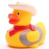 Yeehaw! Meet the Cowboy Duck, dressed to impress with a crisp white cowboy hat and a bold red bandana. This rootin’-tootin’ quacker is ready to gallop into the wild west of your imagination, bringing a splash of frontier fun to your collection. Saddle up for some serious bath time adventures!