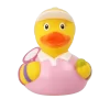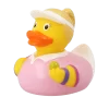 Get ready to serve up some smiles with our ace Female Tennis Player Duck! Dressed in a sporty outfit and a matching visor, she’s always ready for match point. Whether she's volleying on the court or floating in your tub, this duck is a champion of fun.