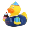 Carrying present and cake, the boy birthday rubber duck is very welcome at any birthday party. Nice little present for young as well as old birthday boys.